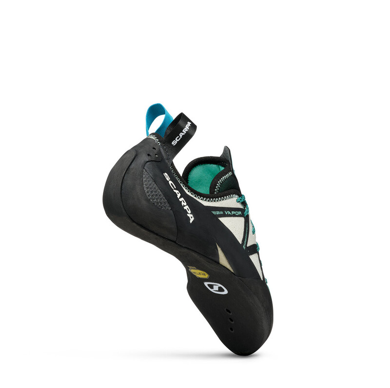 SCARPAS Vapor Woman climbing shoe offers supportive edges with great versatility aimed at more technical outdoor routes. A slightly downward-facing shape and a medium to low angled toe box result in a well-balanced shoe that offers good performance in all climbing styles.