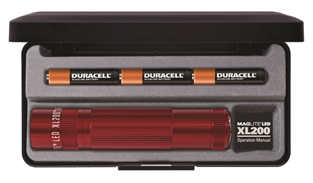 Lommelygte XL200 Rød med 3xAAA batterier i gaveetu
