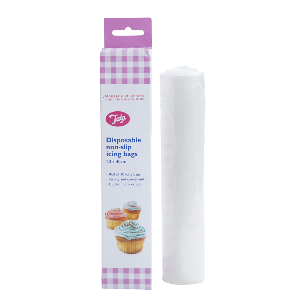 Vores rulle med 30 ekstra stærke, skridsikre poser kan bruges med eller uden tyl. Mål og skær til den rigtige størrelse, så den passer til dit mundstykke. Disse poser kan genbruges, hvilket gør dem til et bæredygtigt valg til dine bagebehov. De er perfekte til alle typer glasur og kan bruges til at sprøjte andre typer mad over. Poserne har en størrelse på 20 x 40 cm og er perfekte til at skabe smukke dekorationer med.