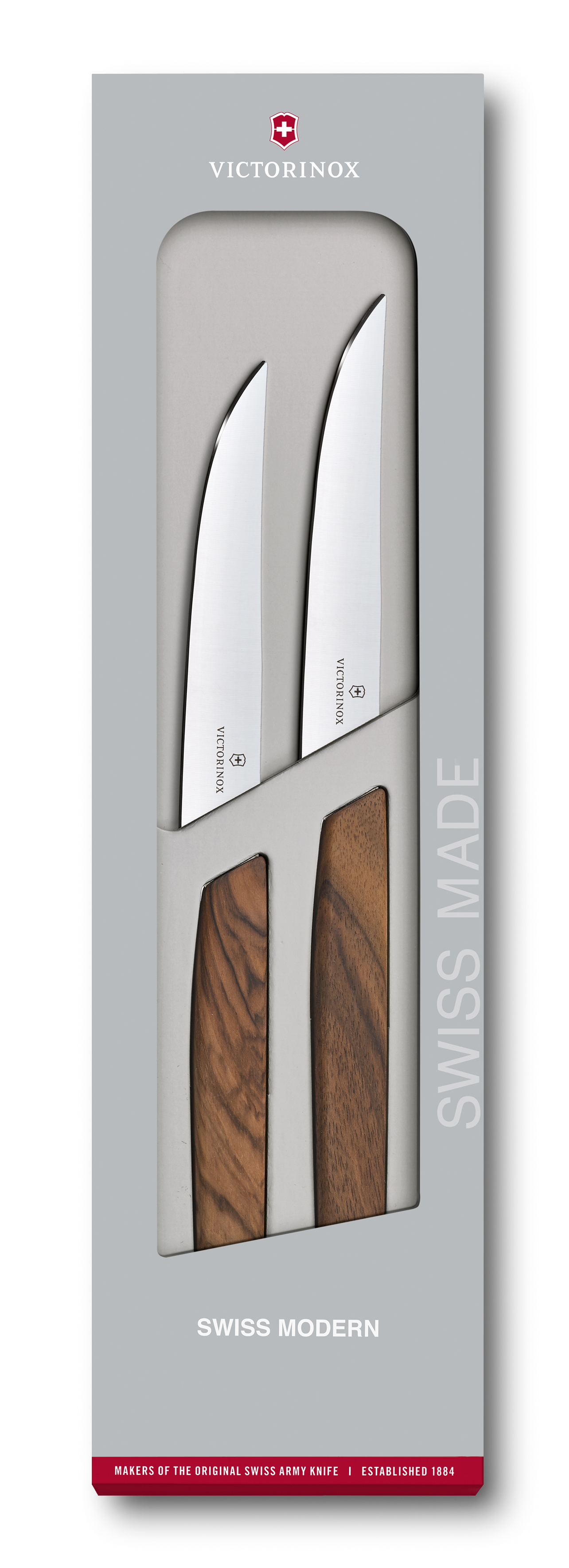 Swiss Modern Steak Knife Set, 2 pieces, 12 cm, wal nut wood, gift box